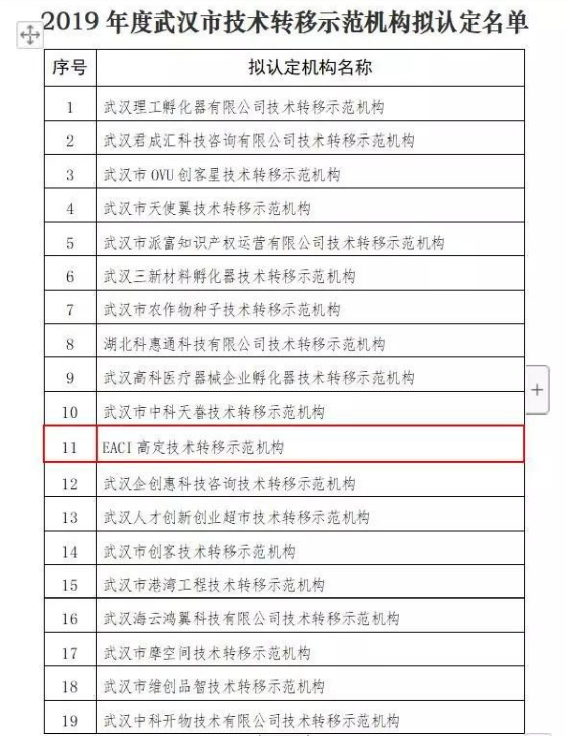 2019年度武漢市技術(shù)轉(zhuǎn)移示范機(jī)構(gòu)